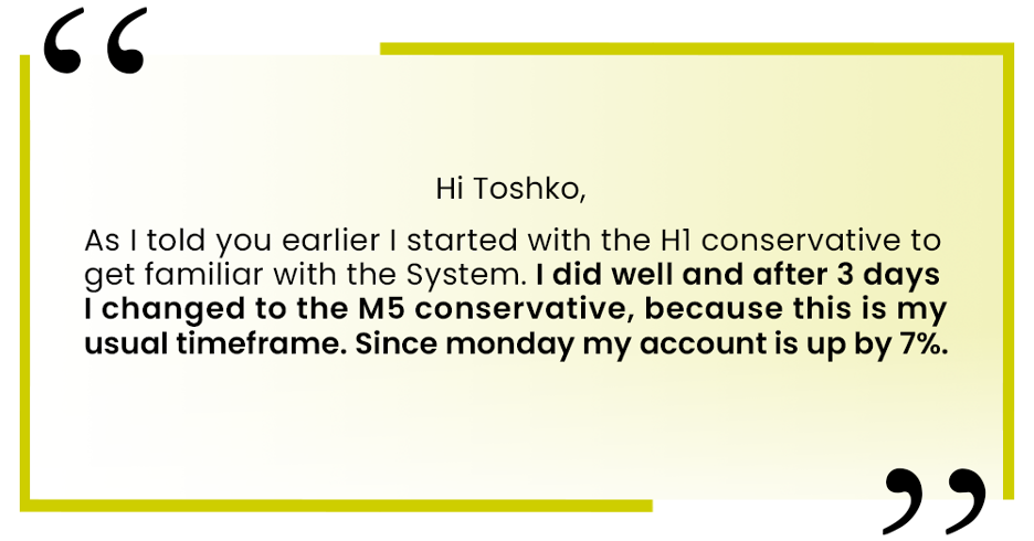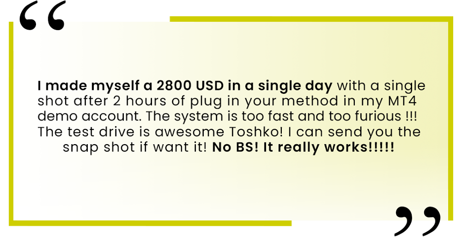That’s just a few of the hundreds of positive comments traders have made about the instant results they get when they start trading like Toshko: